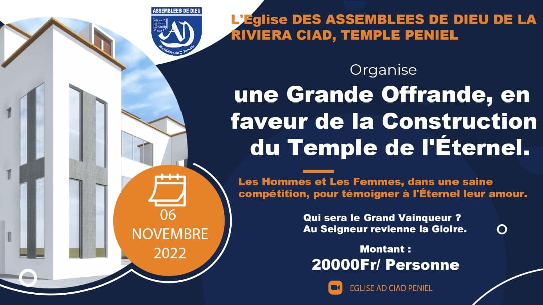 Home Evènements Une grande Offrande, en faveur de la Construction du Temple de l’Éternel Evènements Une grande Offrande, en faveur de la Construction du Temple de l’Éternel 3 décembre 2022 313 FacebookTwitterPinterestWhatsApp Une grande Offrande, en faveur de la Construction du Temple de l’Éternel 06 novembre 2022 ARTICLES CONNEXESPLUS D'ARTICLES Evènements PREMIER CULTE DE LOUANGE 2026 Evènements Mini-veillée de la jeunesse Evènements Dimanche de Pâque 31 Mars 2024 Suivez nous0FansLike8FollowersFollow0SubscribersSubscribe JEUNESSE Culte de Louange et d’adoration 04 Août 2024 Prédications 4 août 2024 Culte de Louange et d’adoration du 24 Novembre 2024 Prédications 24 novembre 2024 CULTE DE LOUANGE ET D’ADORATION DU DIMANCHE 09 MARS 2025 Prédications 9 mars 2025 La semaine de Pâques Evènements 3 décembre 2022